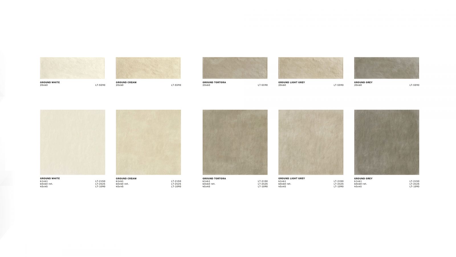 La série Ground allie le style urbain et traditionnel. Par son aspect minimaliste, la collection peut s'allier avec d'autres matériaux et styles. Existante dans de nombreux modèles et formats, que ce soit les murs ou le sol, en mosaïques ou pour l'extérieur, la série vous offre de nombreuses possibilités de décoration de vos habitations et espaces de travail.
