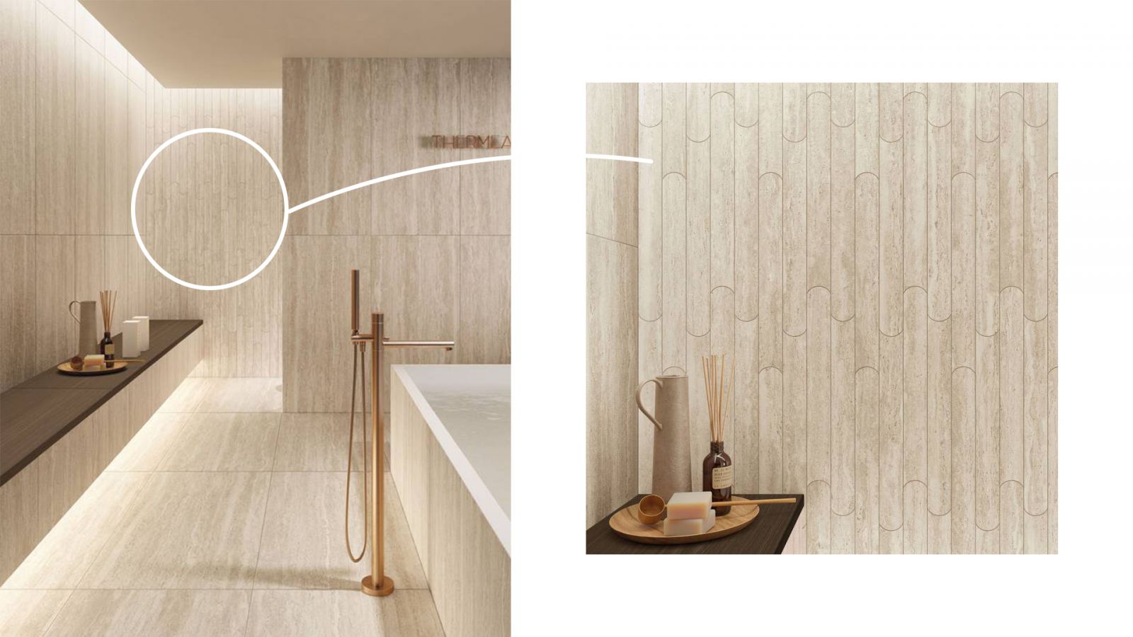 Découvrez notre collection qui s'inspire du travertin, une imitation pierre du nom de Astrum. Cette série de grès cérame est recommandé aussi bien pour les murs que le sol (intérieur et extérieur selon la finition). Dans son modèle pour les murs, elle présente des modèles décoratifs comme de la mosaïques ou un effet carreaux de zellige en forme de vagues. Des tons doux et chaleureux qui sauront habiller votre habitation.