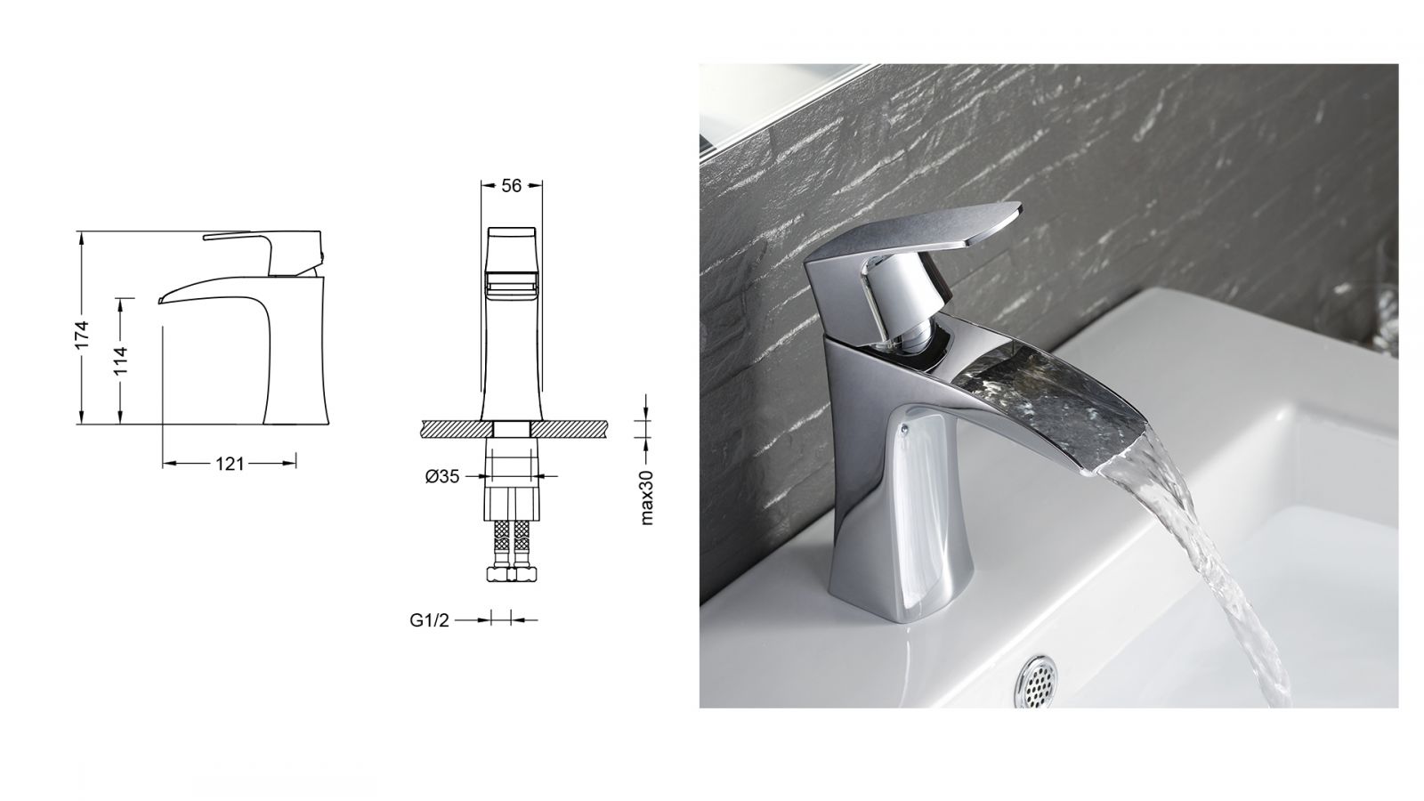 La série de mitigeurs King est une option à l'esthétique atypique avec un bec en cascade distinctif. Disponible en version haute ou au format basique, il offre une finition chromée d'une simplicité élégante. King est polyvalent, s'adaptant à tous les styles de salles de bains, et est également proposé pour les baignoires.