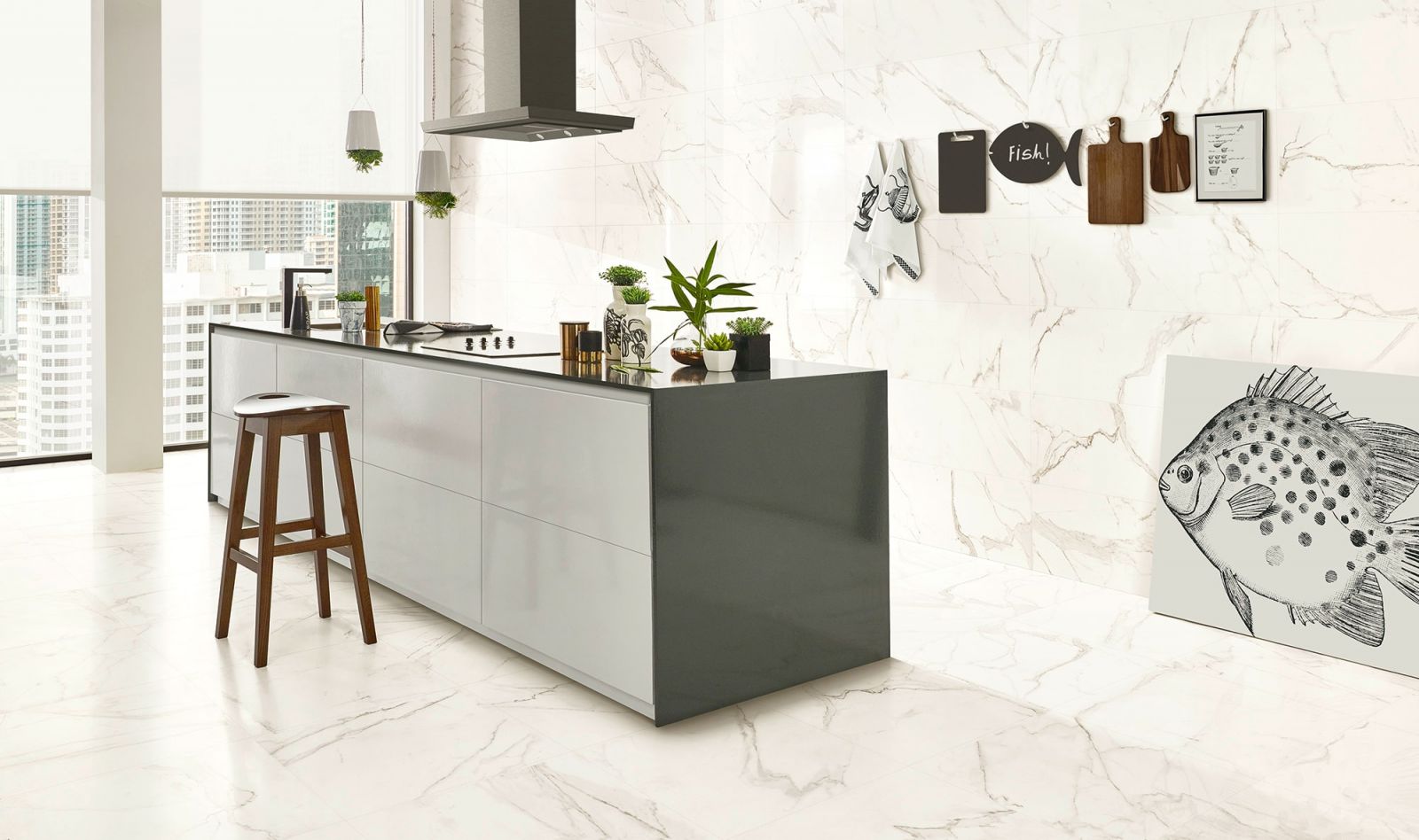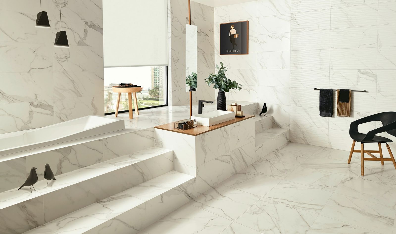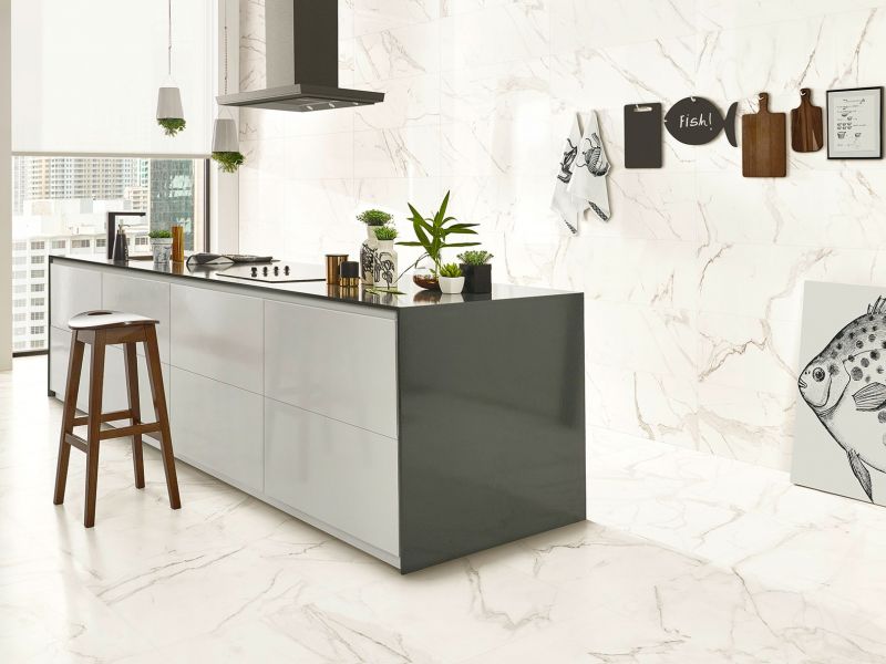 Découvrez l'élégance sophistiquée de la collection PRECIOUS, inspirée par la beauté raffinée du marbre Calacatta. Avec ses veines grises intenses sur un fond blanc cristallin, cette collection capture l'essence du marbre Calacatta, offrant une illusion de profondeur et de mouvement qui remplit les espaces de vie d'une aura luxueuse.