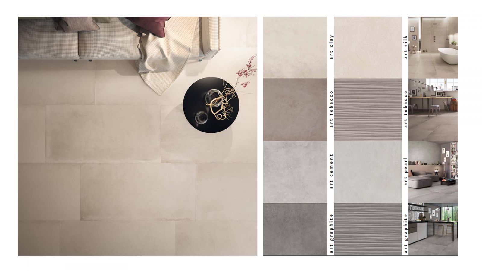ART est une fusion audacieuse de ciment, combinant habilement des éléments traditionnels et avant-gardistes. Sa texture naturelle offre une esthétique authentique, tandis que sa palette de couleurs douces et sophistiquées, ainsi que ses tons neutres, apportent une élégance intemporelle à tout espace. Les grandes formes rectifiées renforcent son caractère contemporain, tant dans sa texture que dans son apparence.