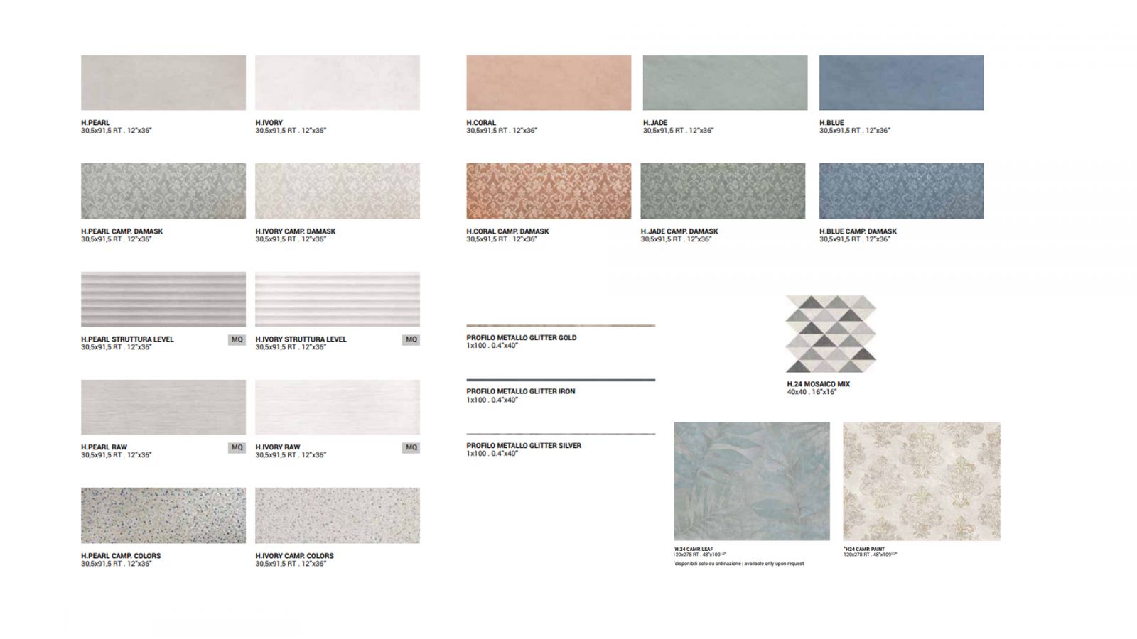 H.24 présente un design matiériste et contemporain, incarnant le projet parfait pour répondre aux exigences de l'architecture moderne. Inspirée du ciment, sa surface est sobre et équilibrée, offrant une palette de couleurs à la fois actuelles et raffinées. Entièrement réalisé en grès cérame avec un revêtement en pâte blanche, H.24 représente une solution optimale pour les sols et les revêtements, que ce soit dans des espaces publics ou privés. Sa polyvalence permet une adaptation à une multitude d'environnements, où il devient l'atout principal et confère un style unique à chaque espace. Disponible dans le format plaque 120x278 épaisseur 6 mm, ainsi que dans des grands formats traditionnels tels que le 120x120, 60x120, 60x60 et 30x60, le projet H.24 offre une variété d'options pour répondre aux besoins les plus diversifiés en matière de design et d'aménagement intérieur.