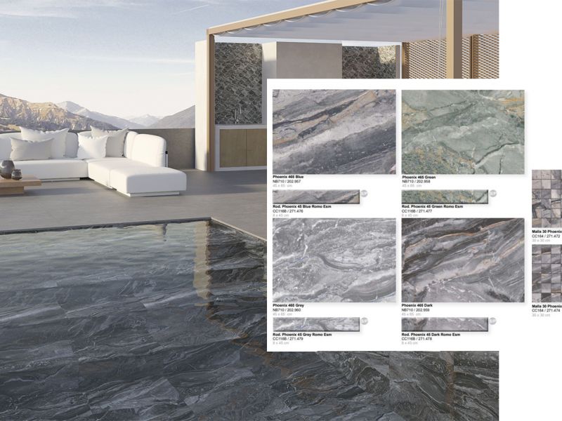 La série de carrelages Phoénix offre une adaptabilité remarquable, idéale aussi bien pour sublimer l'intérieur que l'extérieur de votre résidence. Nous vous conseillons vivement d'envisager son utilisation pour revêtir votre piscine ou votre terrasse, apportant ainsi une élégance distinctive à vos espaces extérieurs. Sa finition est spécialement conçue pour résister aux conditions humides, offrant une texture antidérapante pour assurer la sécurité de votre environnement domestique. Phoenix propose une imitation de mabre veiné qui capte l'essence même de l'élégance de la pierre naturelle.