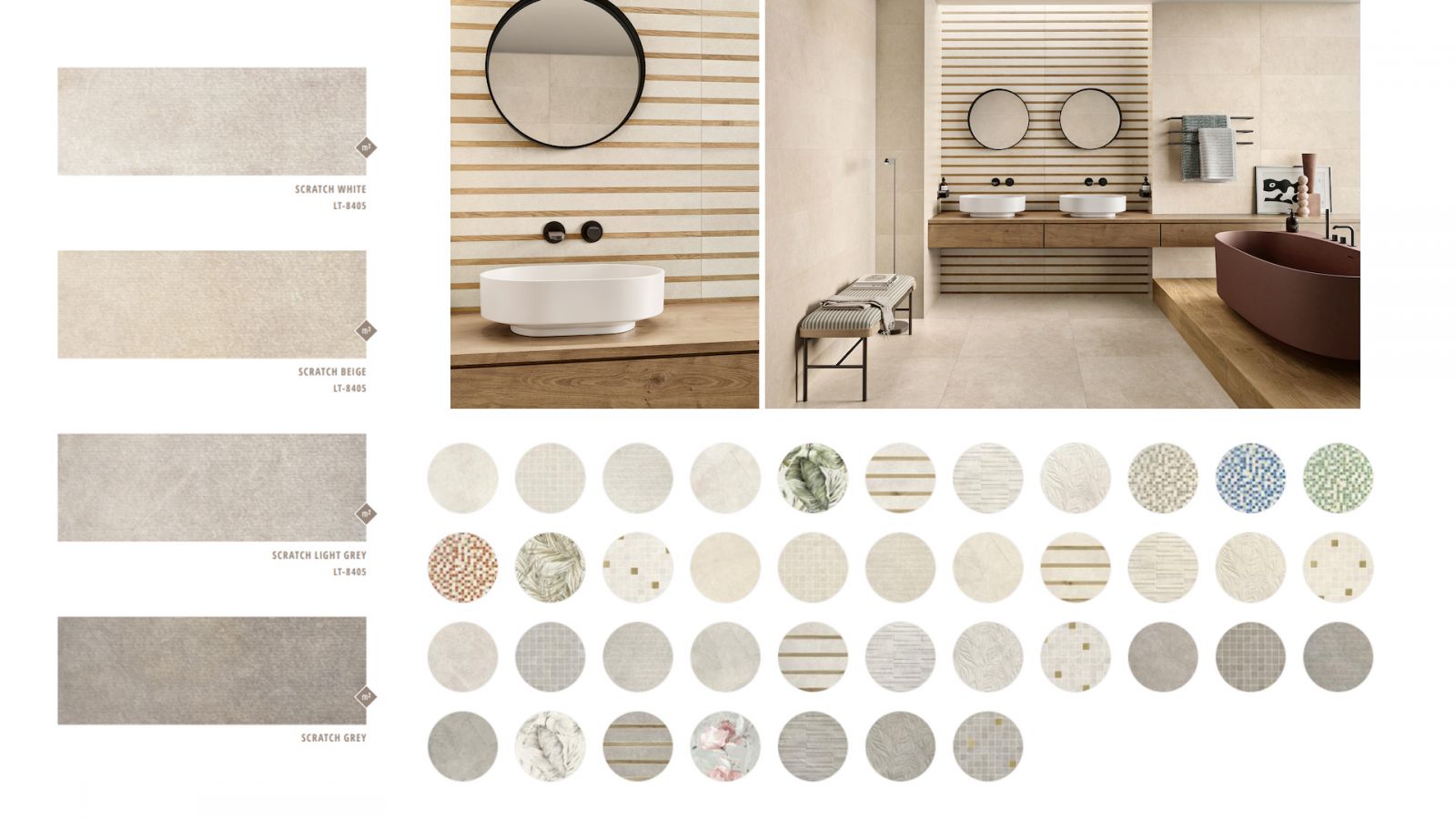 Les finitions Touch, lisse et satinée, ainsi que la toute nouvelle finition In&Out, caractérisée par ses propriétés antidérapantes, offrent une transition harmonieuse entre les espaces intérieurs et extérieurs. Cette innovation permet une continuité parfaite dans la conception, avec un seul produit adapté à tous les environnements.
