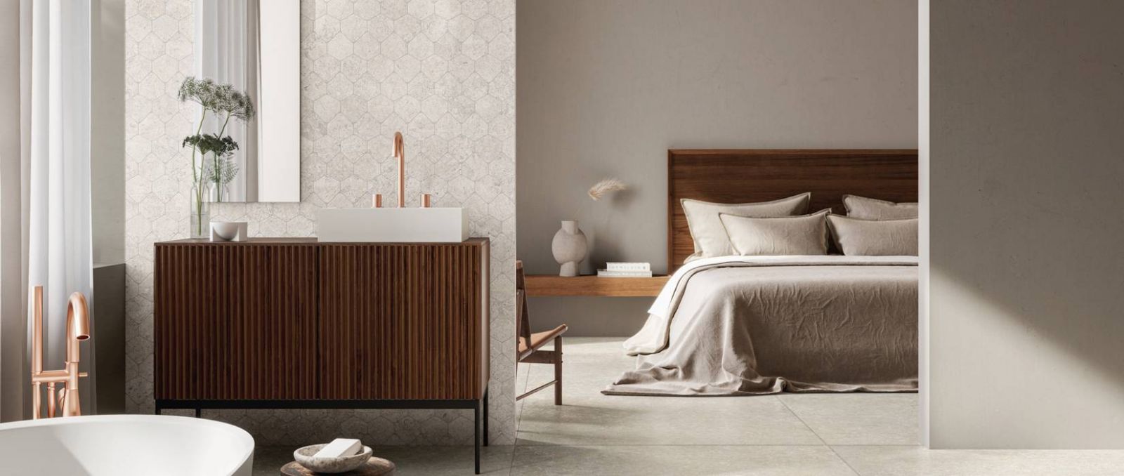Esthétique naturelle : des surfaces lumineuses aux couleurs neutres et naturelles, captant la douceur de la lumière pour créer des intérieurs empreints de sérénité.