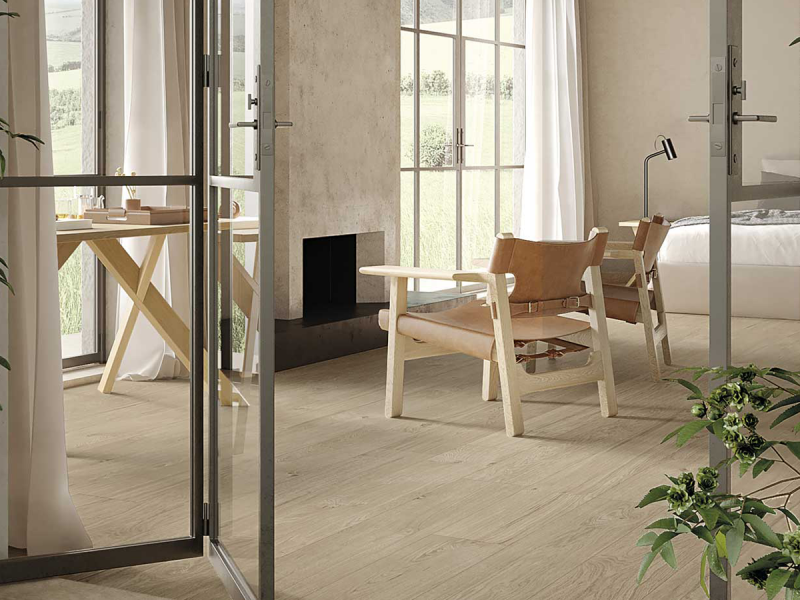 Grâce à sa surface True Touch, le carrelage imitation bois PLEIN AIR restitue le toucher délicat du bois, tandis que sa résistance aux rayures, à l’humidité et aux contraintes extérieures en fait un choix idéal en intérieur comme en extérieur.