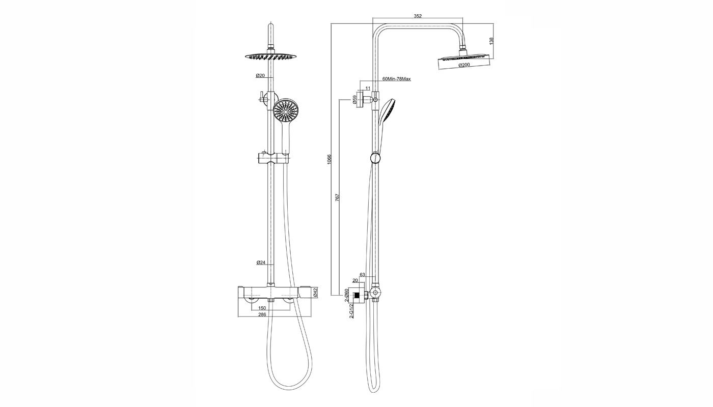 Hauteur totale colonne de douche : 1066mm