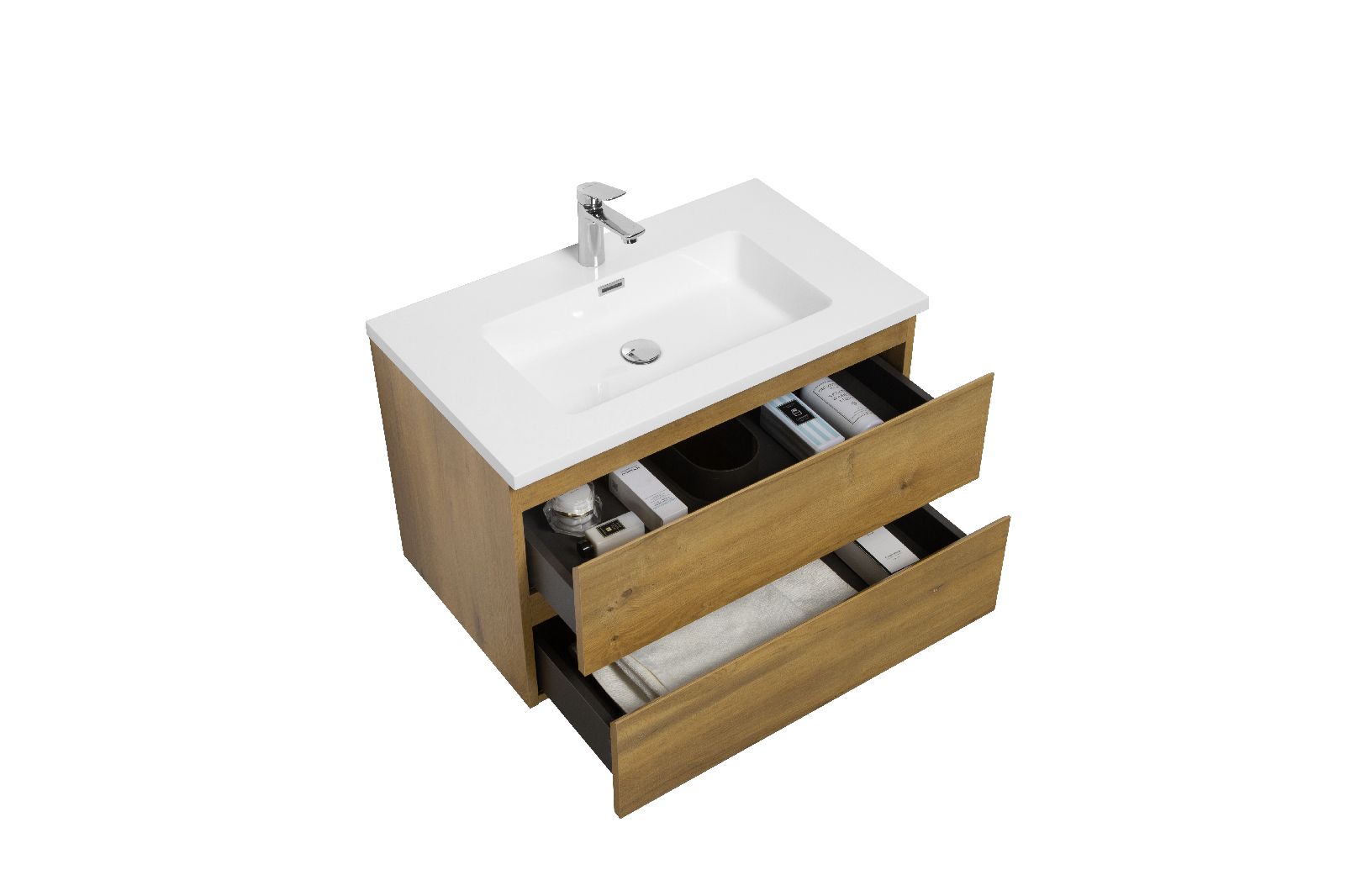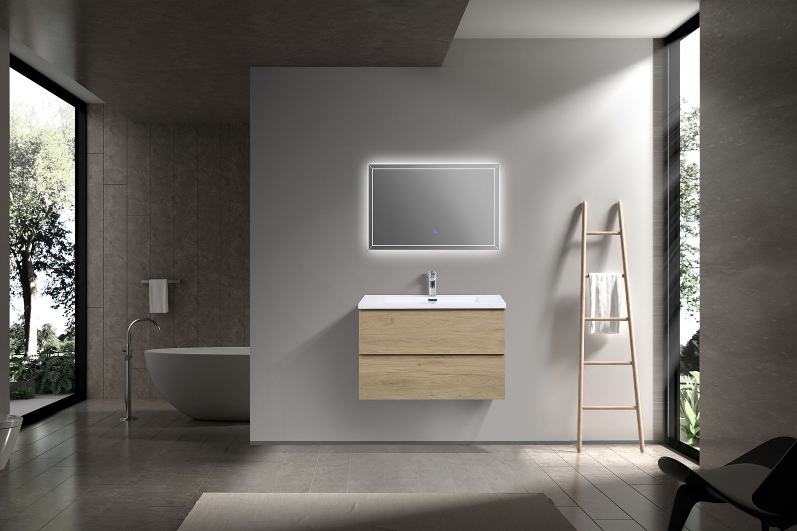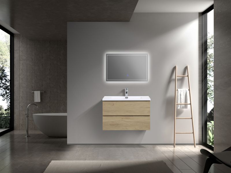 Apportez une touche contemporaine à votre salle de bain avec notre série SERENITY 800. Meuble suspendu aux lignes épurées, il créé une impression de légèreté et d’espace, idéale pour les intérieurs modernes. Habillé d’un revêtement effet bois naturel, il confère à votre salle de bain une atmosphère chaleureuse. Pour un décor immaculé, optez pour la finition blanc.