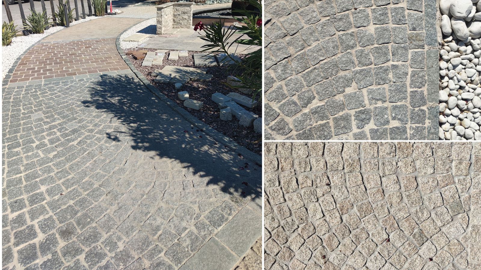 Ici représentés en anthracite et en jaune. Les pavés en granit font office de valeur sûre en la matière.