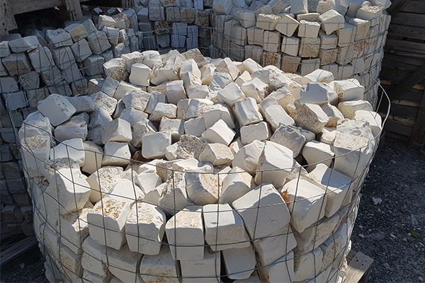 Lisse, avec un aspect vieilli et d'un blanc cassé raffiné, ses légères aspérités dévoilent une couleur orangée sur toutes les faces de la pierre. Chaque pavé possède une teinte unique pour donner un effet ancien et harmonieux.