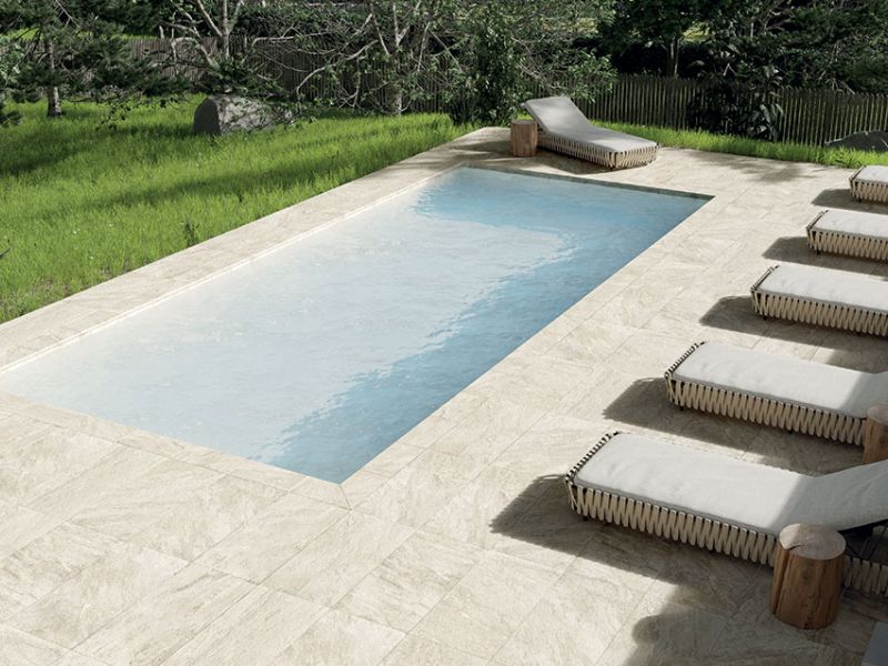 Découvrez la série Quartz avec des airs de travertins elle est idéale pour les abords d'une piscine.