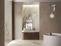 Découvrez l'éclat des grandes dalles effet marbre de la série Boutique. Les pièces revêtues avec ces dalles deviennent de véritables lieux atypiques. Les couleurs exclusives sont parfaites pour des habitations sophistiquées et raffinées, des hôtels aux résidences de luxe. La collection existe également pour sols.
