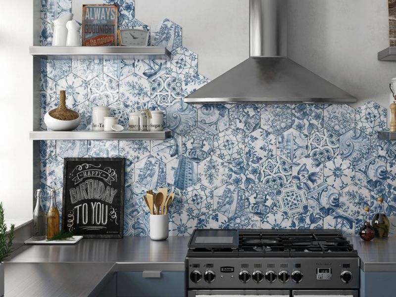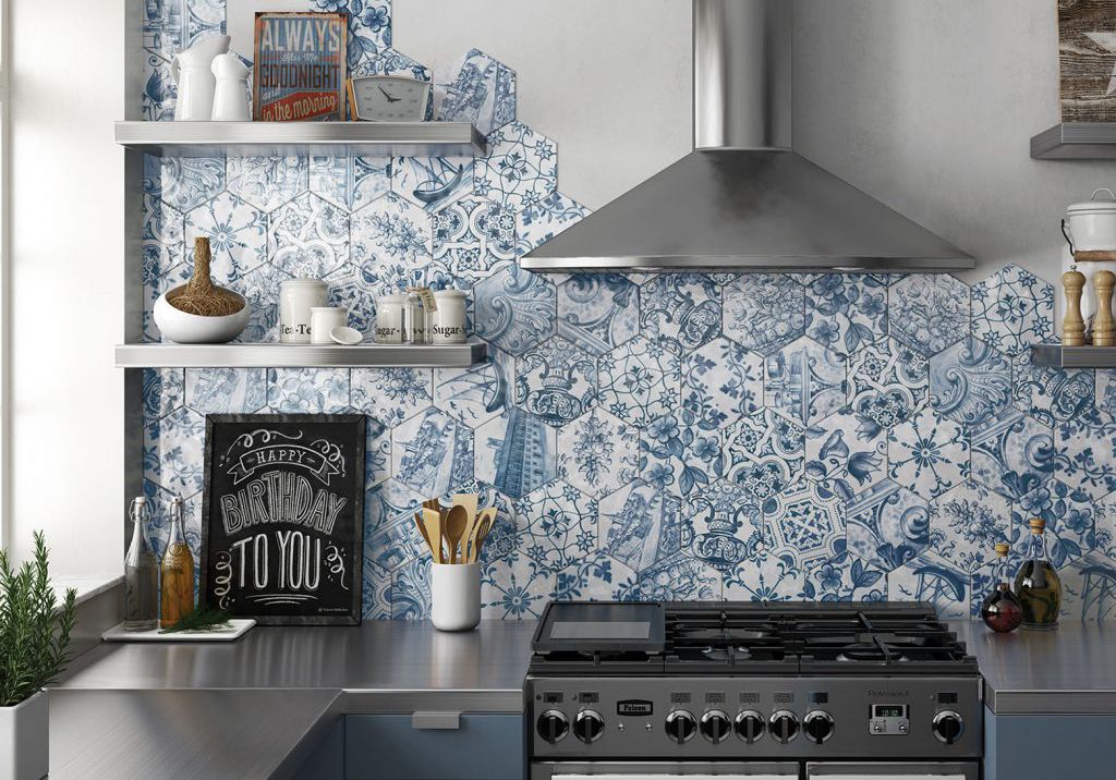 La collection Hexatile carrelage classique pour les murs apporte un aspect dynamique grâce à ses carreaux qui rappelle les faïences colorées de Lisbonne.