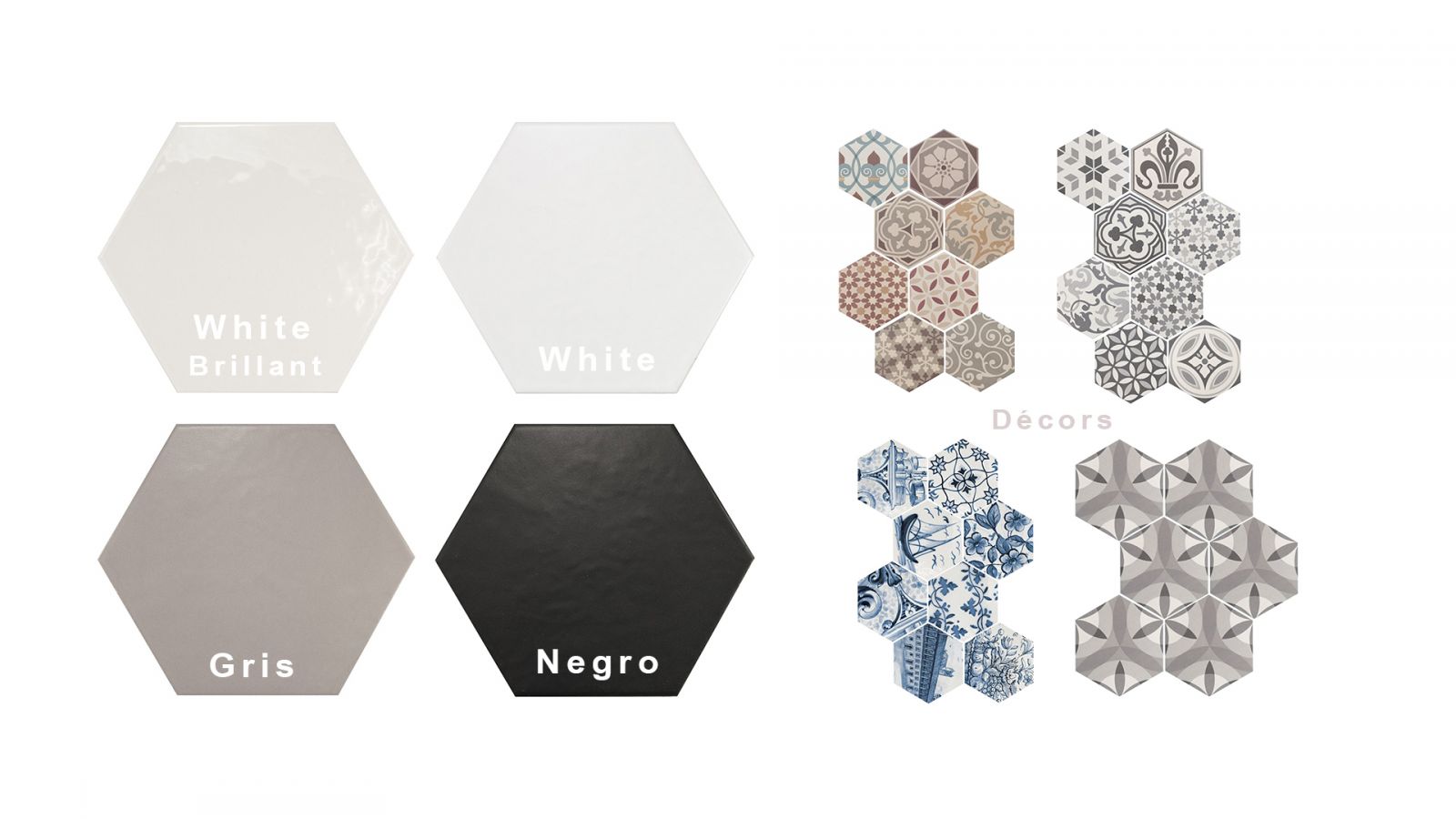 La série Hexatile se compose de trois coloris qui habilleront à merveille vos cuisines et salles de bains et pour les plus audacieux leur pièce à vivre. Les décors eux vous feront voyager vers des villes emblématiques comme Lisbonne s'inspirants des faïences colorées et Azulejos de la capitale.