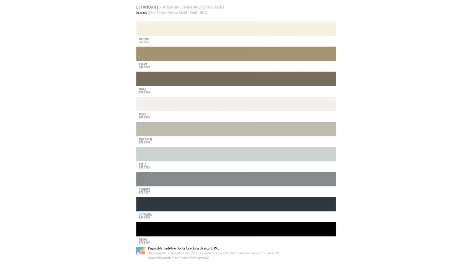 Smart Stucco est disponible dans une grande variété de coloris. Il possède une grille d'écoulement standard en inox.