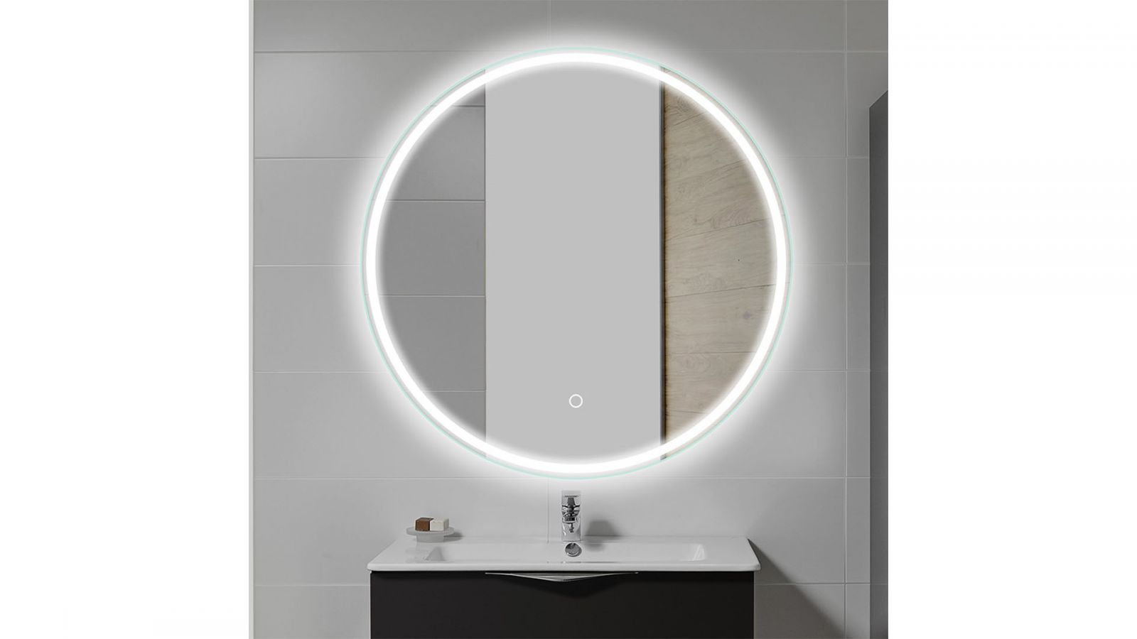 Le miroir Flore est rétro-éclairant à LED équipé d’un système anti-buée. L’éclairage s'active grâce à un interrupteur tactile. Il existe dans différentes teintes avec un bandeau sablé.
