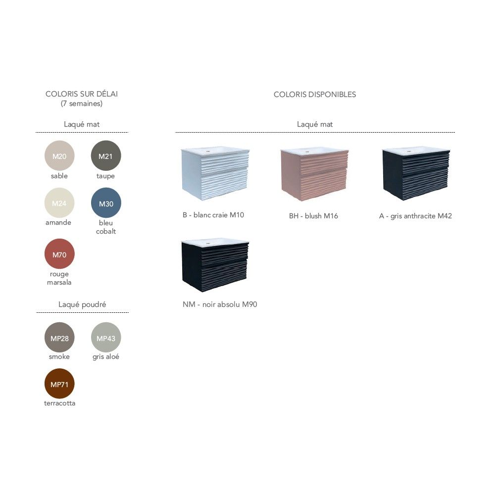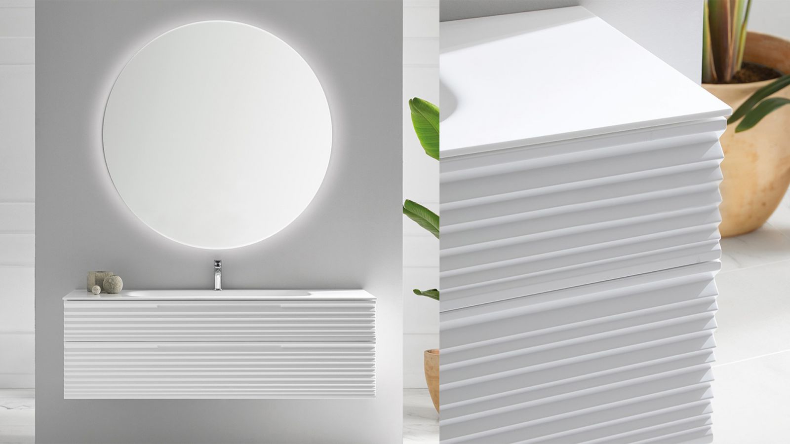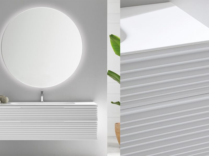 La série de meubles de salle de bains Dune offre une possibilité de 4 dimensions et un module. Pour les salles de bains les plus exigeantes, il vous est possible d'opter pour le "sur-mesure" avec cette gamme de meubles. Ses ondulations de façade lui apportent un design très tendance.