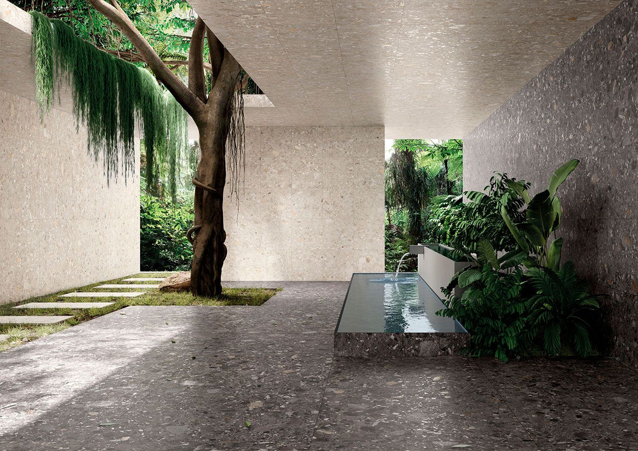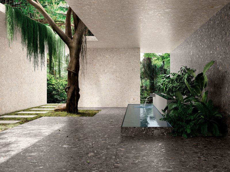 Les carreaux pour extérieur de la série Ceppo di grès, inspirés du motif terrazzo, apportent de l'originalité à vos espaces extérieurs. Pour une terrasse privée, ou un espace public, tout est possible.