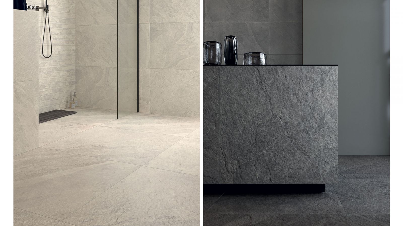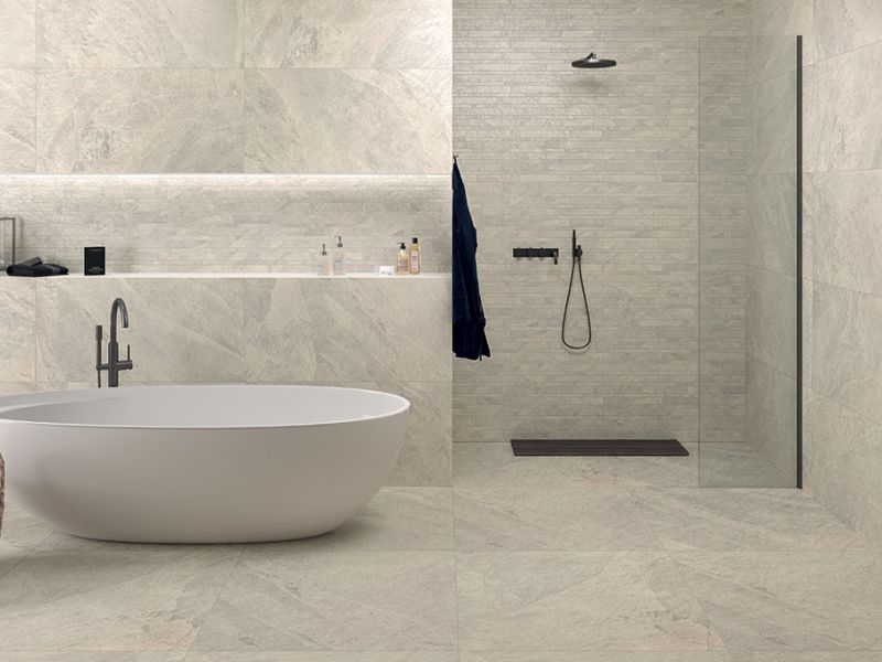 La série Slate disponible dans trois coloris sobres. Convient à la fois pour une pièce à vivre et une salle de bains. La série Slate apporte à votre intérieur et à vos murs un aspect chic et chaleureux. Existe également pour sols intérieurs et extérieurs (selon la finition).