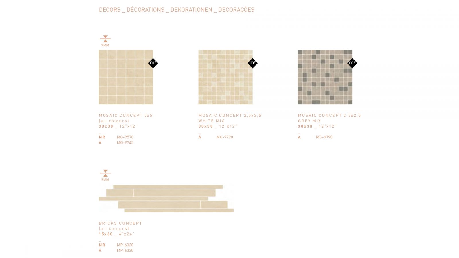 Disponible dans 4 teintes, pour intérieurs et extérieurs ainsi que les sols et les murs de vos maisons avec des décors spéciaux. La série Concept reprend le design de la pierre naturelle de Limestone. Elle convient pour des espaces alliant classique et modernisme. Existe dans différentes finitions.