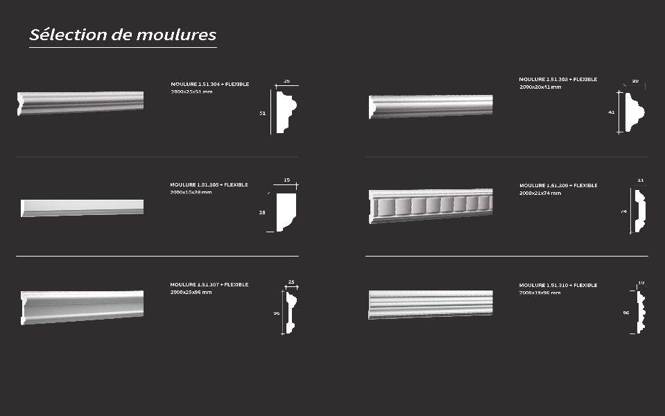 Les moulures de chez Cerazur sont disponibles dans de nombreux modèles. Des plus simples aux plus travaillées, avec des décors aux formes végétales ou géométriques. Dans le même principe que les corniches, les moulures façonnent vos plafonds et murs avec des designs hors du commun.