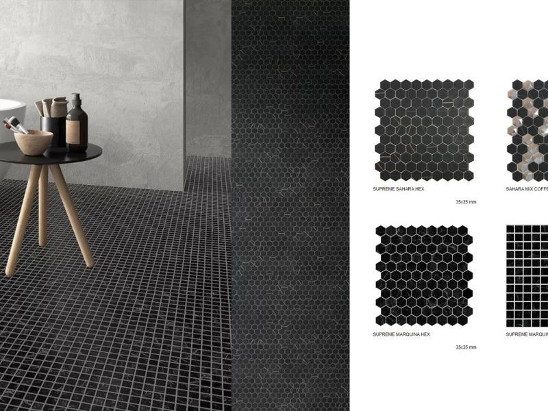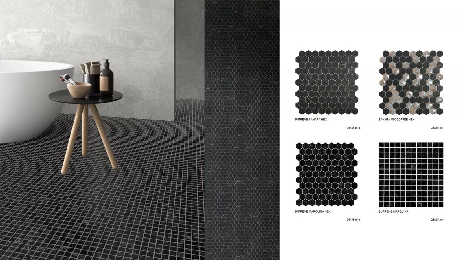 La collection de mosaïques Supreme vous offre des modèles de différentes formes. Un modèle carré en 35x35 cm et octogonal pour une dimension de 25x25 cm. Leurs coloris modernes restent très sobres et chic. Cette série et conseillée uniquement en intérieur.